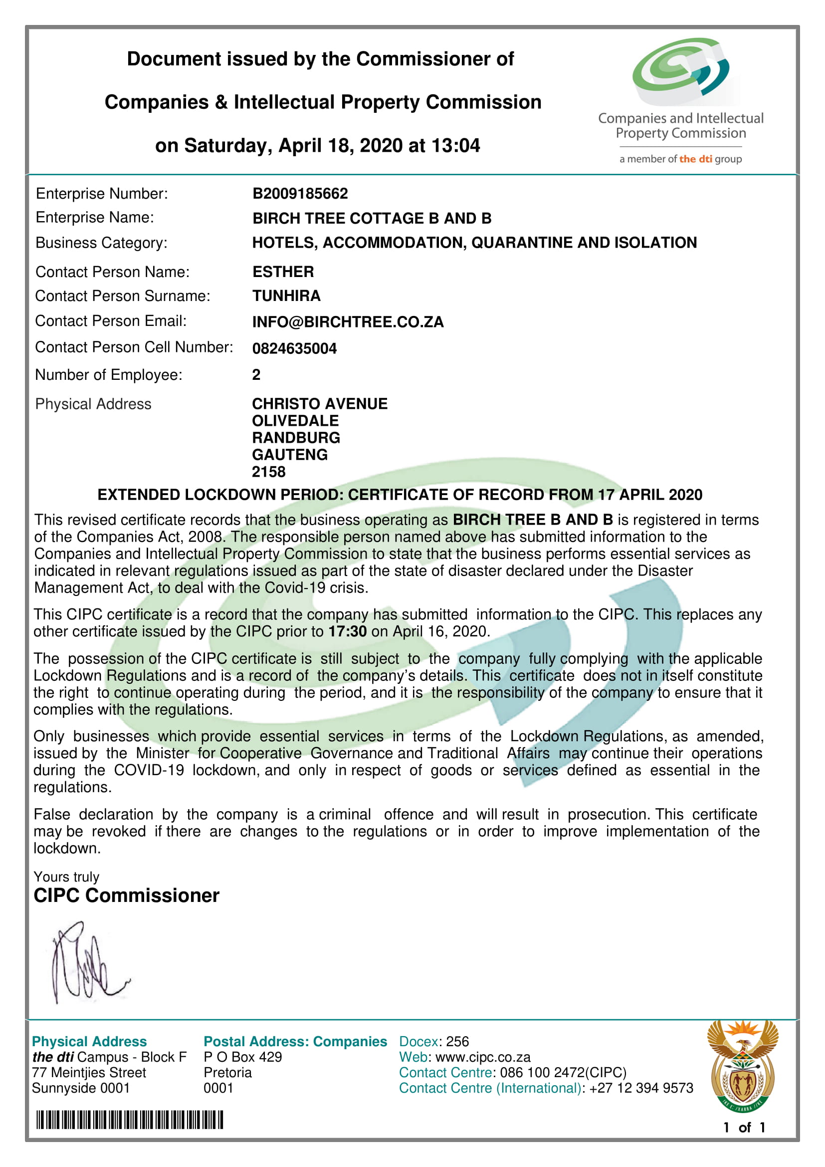 All visitors undertake to inform Esther Tunhira (082 463 5004) should they be diagnosed with COVID-19 within 21 days after visiting the Guest House, as to facilitate contact tracing.